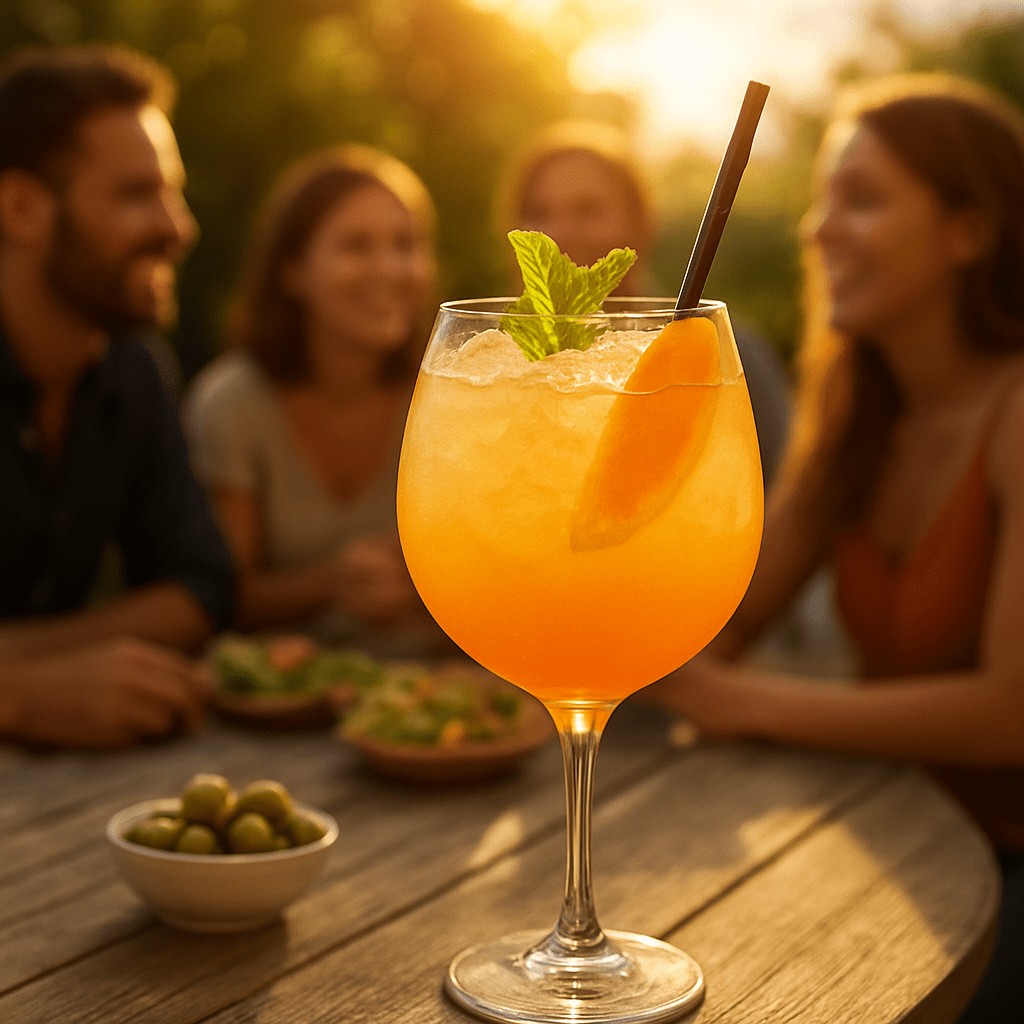 Lekker fris en heerlijk fruitig, met een knipoog van sinaasappel en een bruisende twist van bubbelwater en mousserende wijn. De munt geeft een verfrissende twist, waardoor elke slok voelt als een kleine vakantie aan de Spaanse kust.